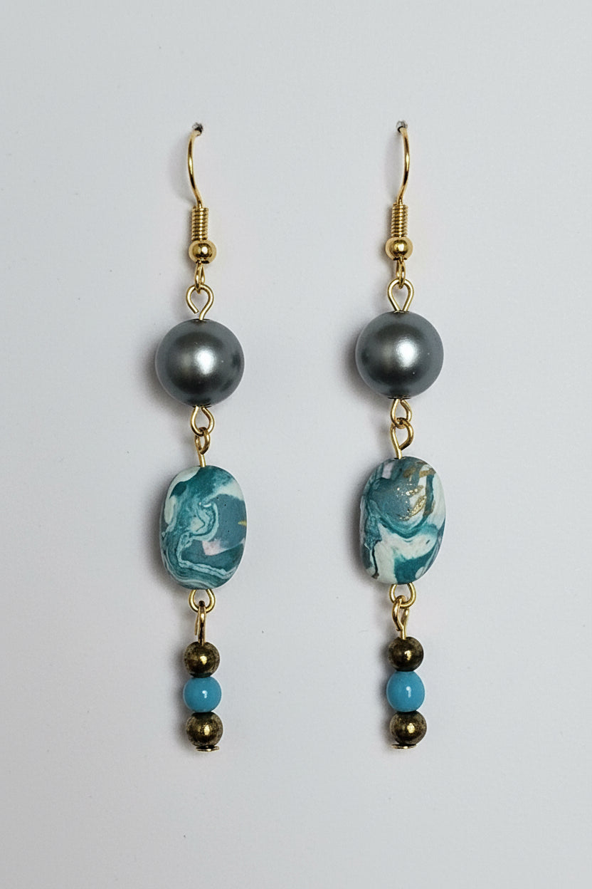 Handmade Turquoise Clay/Plastic/Brass Dangle Earrings on Hypo Aller Gold Tone Hooks