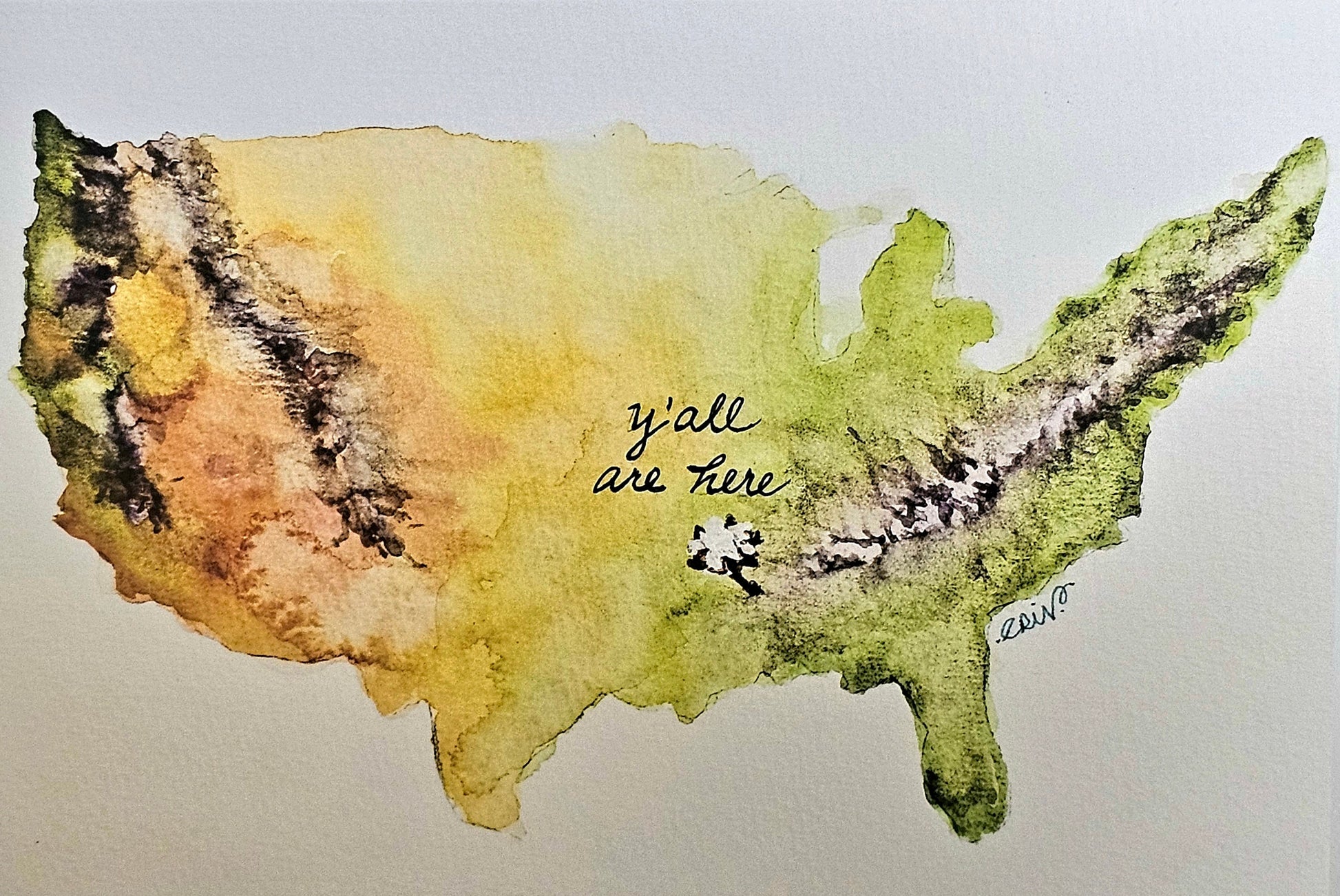 Watercolor Print Huntsville AL Map Greeting Card: 'Y'All Are Here' With Envelope