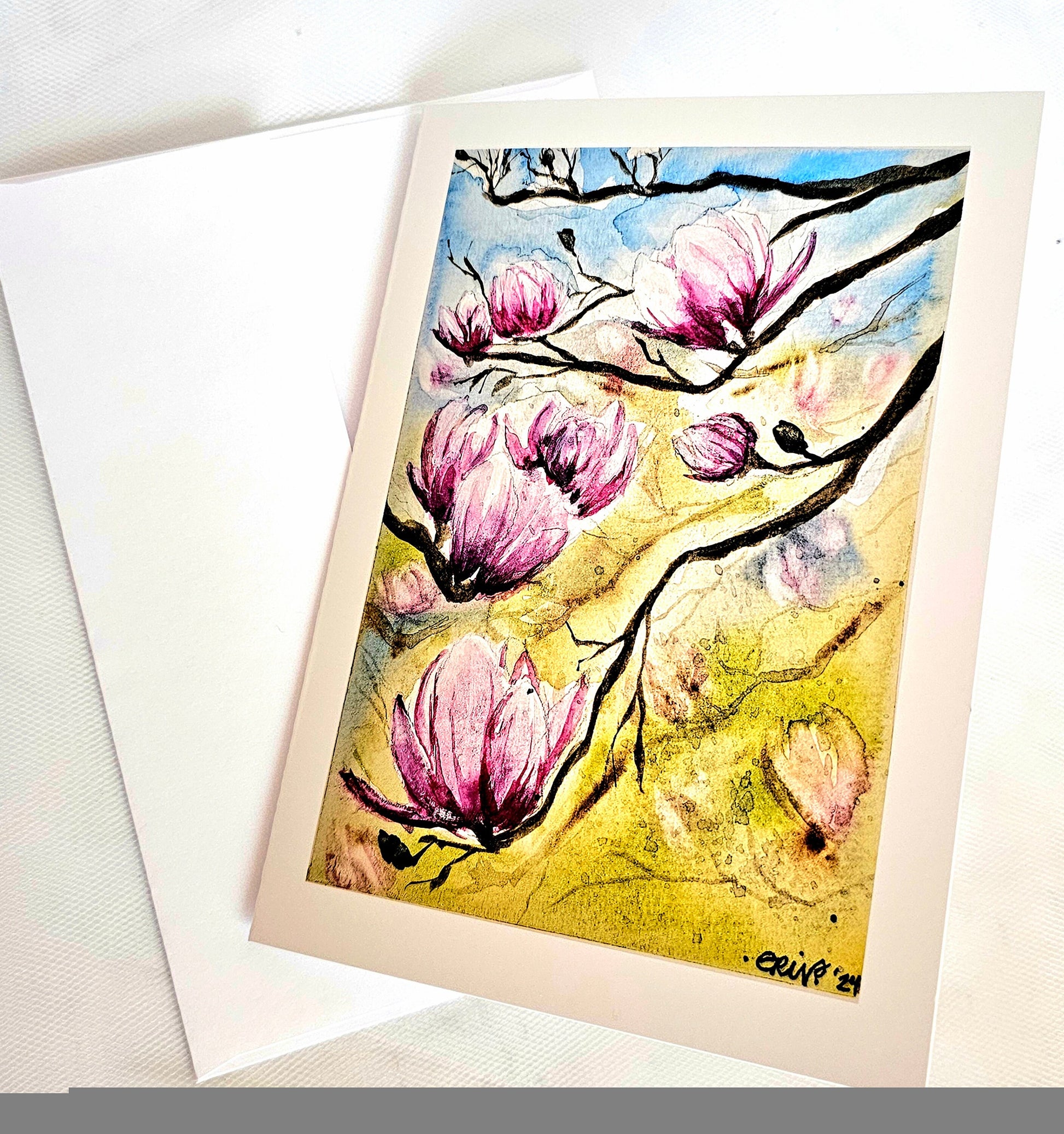 Watercolor Tulip Tree Greeting Card: Hand-Painted Floral Art (5x7)